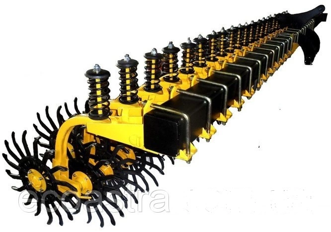 Еще одна уникальность бороны в том,что при проходе на скорости до 20 км/ч , зубья бороны разбивают крупные комки грунта не повреждая растение!